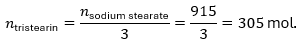 - Mỗi mol tristearin sản xuất 3 mol sodium stearate, tức là: