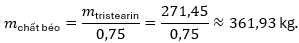 \text{x kg chất béo} = \frac{\text{Khối lượng tristearin yêu cầu}}{0.75}