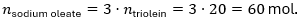 1 \, \text{mol triolein} \rightarrow 3 \, \text{mol sodium oleate}