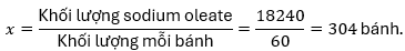 \text{Tổng khối lượng sodium oleate} = x \, \text{bánh} \times 60 \, \text{g} = 60x \, \text{g}
