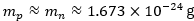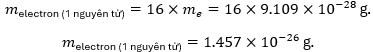 . Khối lượng của 1 electron: me = 9.109 x 10-28 g. Khối lượng của 1 proton hoặc neutron: