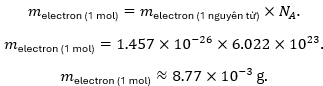\text{Khối lượng của electron trong 1 mol} = N_A \times \text{khối lượng 1 electron}