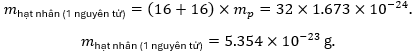Khối lượng của hạt nhân (proton và neutron) trong 1 nguyên tử là: