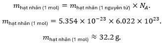 Khối lượng của hạt nhân trong 1 mol nguyên tử sulfur là: