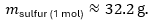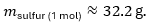 Khối lượng của 1 mol nguyên tử sulfur là: