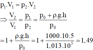 - \( V_2 \) là thể tích của bọt khí ở mặt nước.