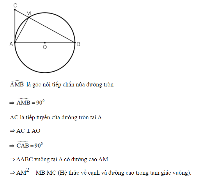 ⇒ AM2 = MB.MC (Hệ thức về cạnh và đường cao trong tam giác vuông).