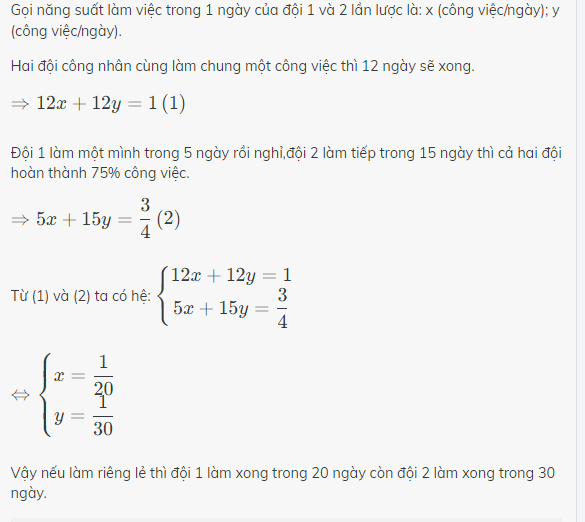 - Gọi năng suất của đội 2 là \( B \) (công việc/ngày).