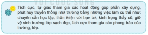 Để phát huy truyền thống nhà trường, trước hết, mỗi chúng ta cần nhận thức rõ về giá trị của nó. Hãy tham gia các hoạt động do nhà trường tổ chức, từ những buổi lễ kỷ niệm đến các chương trình tình nguyện. Qua đó, chúng ta không chỉ góp phần làm phong phú thêm truyền thống mà còn học hỏi được nhiều điều bổ ích từ các thế hệ đi trước.