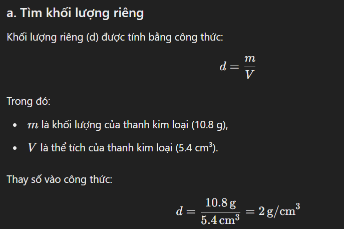 a . tìm khối lượng riêng trọng lượng riêng của kim loại