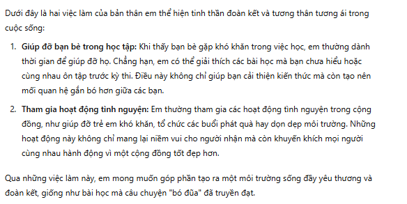 Hai việc làm trên không chỉ thể hiện tinh thần đoàn kết, tương thân tương ái mà còn góp phần xây dựng một cộng đồng vững mạnh, nơi mọi người cùng nhau hỗ trợ và phát triển.