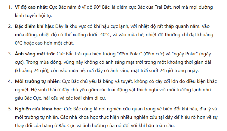Bắc Cực hay cực Bắc của Trái Đất (Cực Bắc địa lý) là điểm có vĩ độ bằng +90 độ trên Trái Đất (hay là điểm xuất phát tất cả kinh tuyến). Tại Bắc Cực mọi hướng đều là hướng Nam. Bao phủ nó là Bắc Băng Dương. Điểm Cực Bắc nói trên là Cực Bắc địa lý, đây chỉ là điểm tưởng tượng và nó khác với cực từ Bắc của Trái Đất