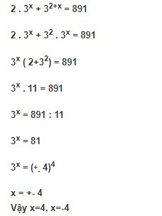 tìm số tự nhiên x,biết 2.3x + 32 + x = 891