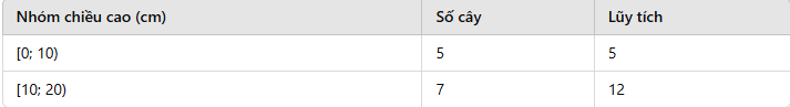Cho mẫu số liệu ghép nhóm về chiều cao của 25 cây dừa giống như sau: