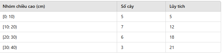 Vậy, cây thứ 11 nằm trong nhóm [20; 30).