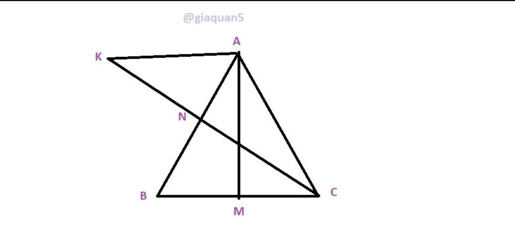 Cho tam giác ABC cân tại A và M là trung điểm của BC . Gọi N là trung điểm của AB ,trên tia đối của tia NC lấy đểm K sao cho NK=