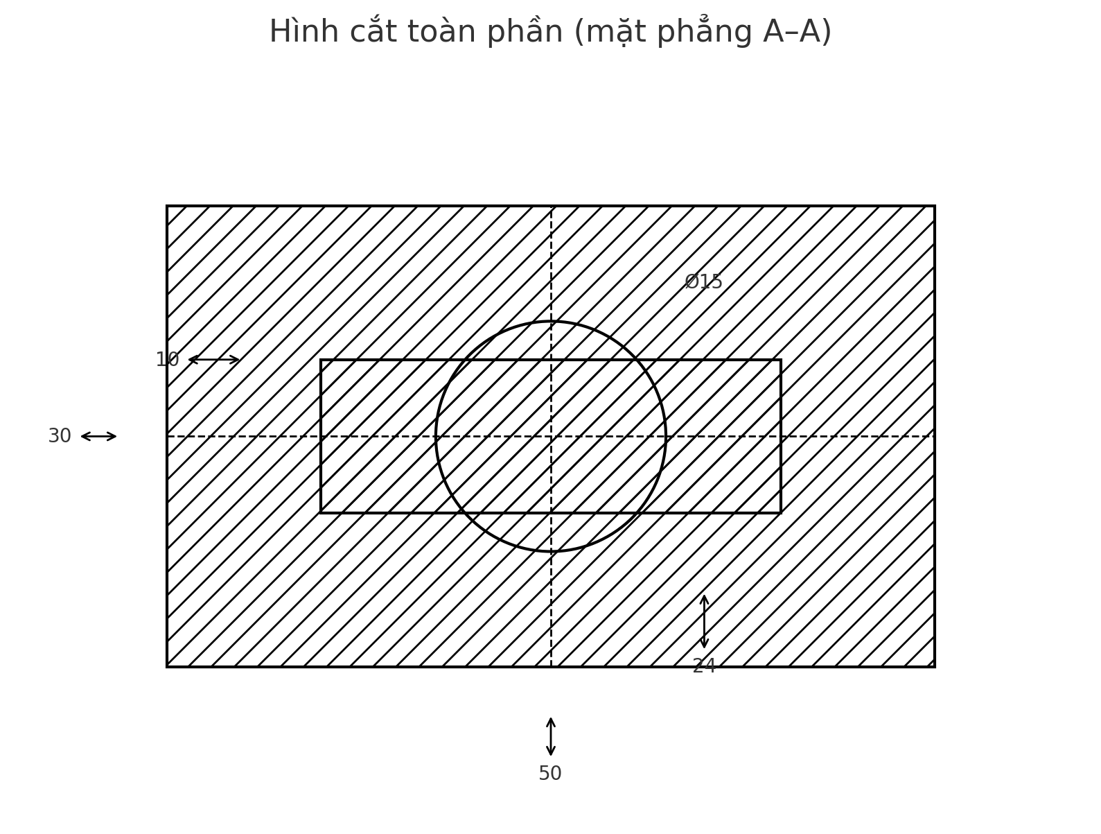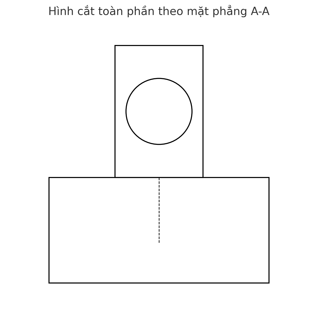hình cắt toàn phần của vật thể theo mặt phẳng cắt A–A. Hình vẽ thể hiện chi tiết cấu trúc bên trong, bao gồm phần thân trụ và lỗ trụ ở chính giữa