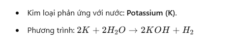 Potassium là kim loại kiềm, phản ứng mạnh với nước, tạo ra dung dịch kiềm (KOH) và giải phóng khí hydro (H₂).
