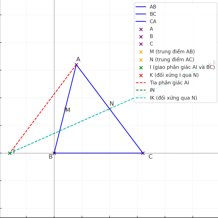 Do đó, tứ giác AICK có hai đường chéo AC và IK cắt nhau tại trung điểm N của mỗi đường