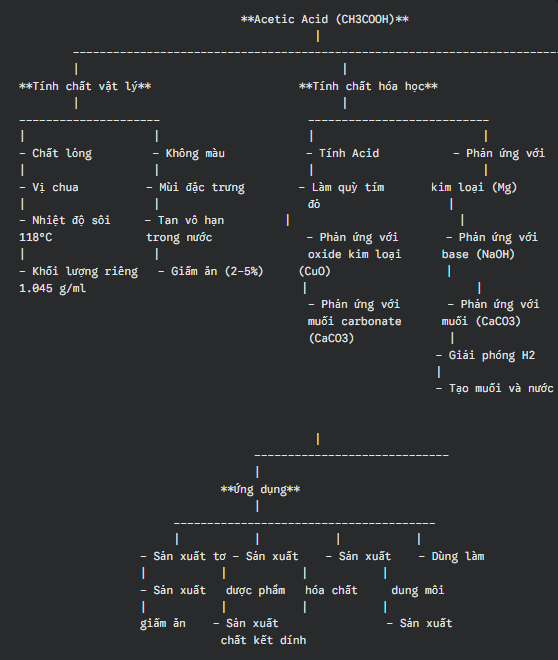 Vẽ sơ đồ tư duy về nhu cầu và ứng dụng khi sử dụng CH3CooH