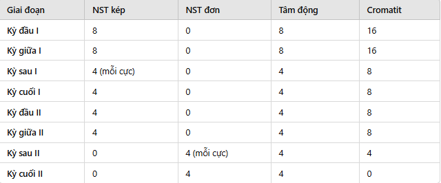 Số nhiễm sắc thể kép: 4 (ở mỗi cực tế bào).