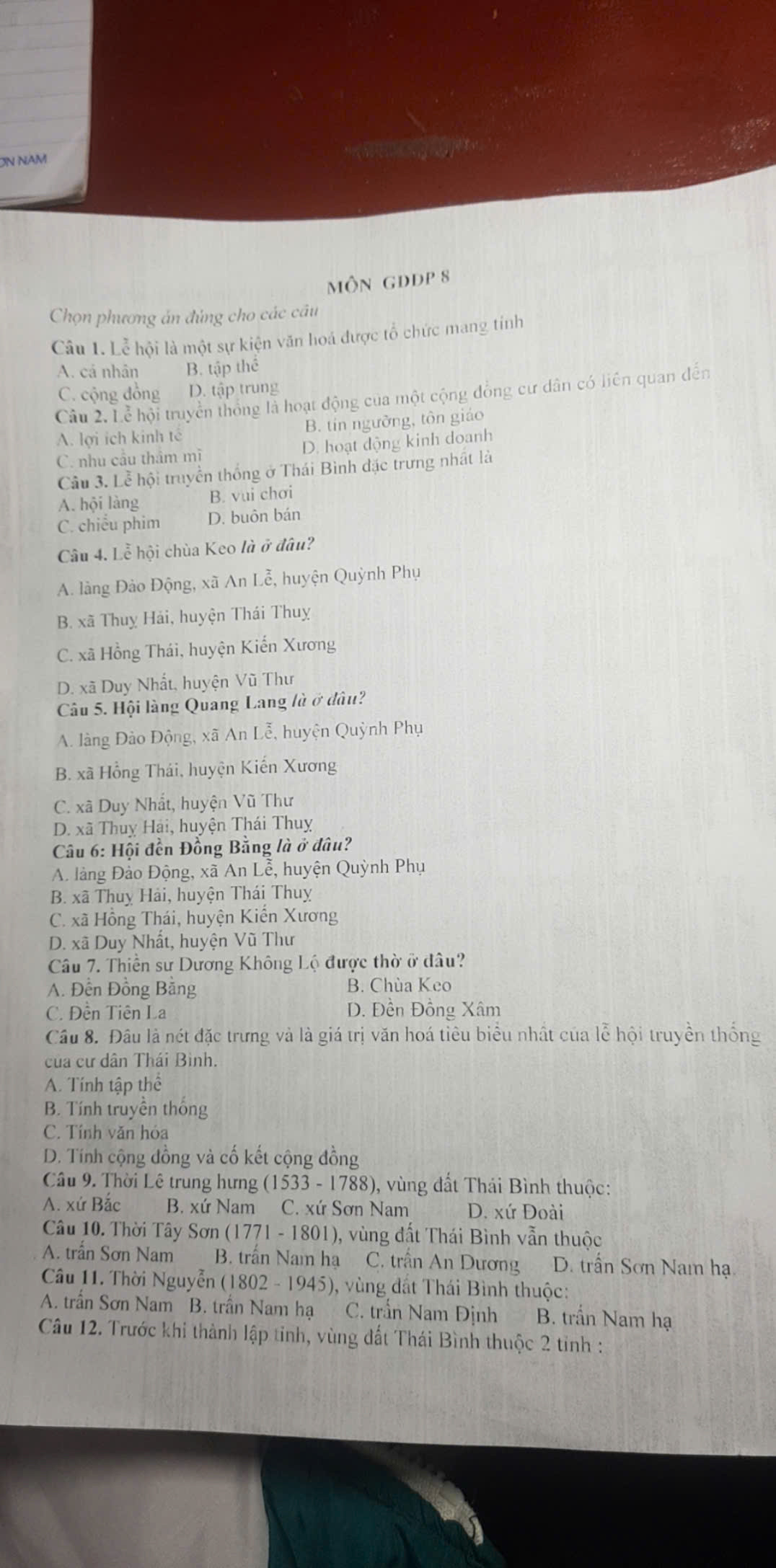 Cho mình xin 1 đề kiểm tra môn giáo dục địa phương lớp 8