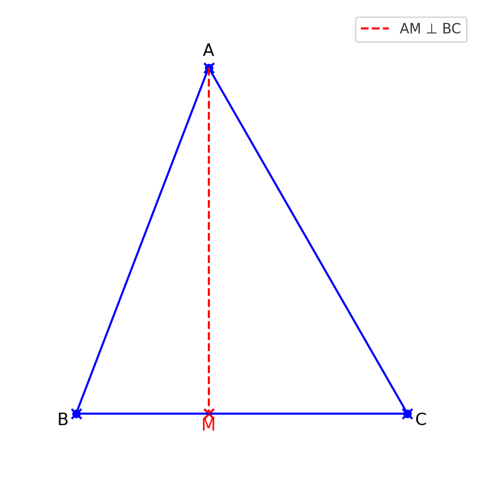 - Trong tam giác \( ABM \), \( AM \) là đường cao do bài toán đã cho \( AM \perp BC \).