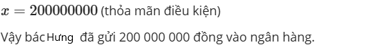 228 568 000 đồng . Hỏi số tiền ban đầu bác Hưng gửi tiết kiệm là bao nhiêu ? Biết lãi suất ngân hàng không đổi trong 2 năm đó .