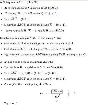 C) gọi N là trung điểm CD, alpha là góc giữa MN và ( ABCD ) xác định alpha và tan alpha
