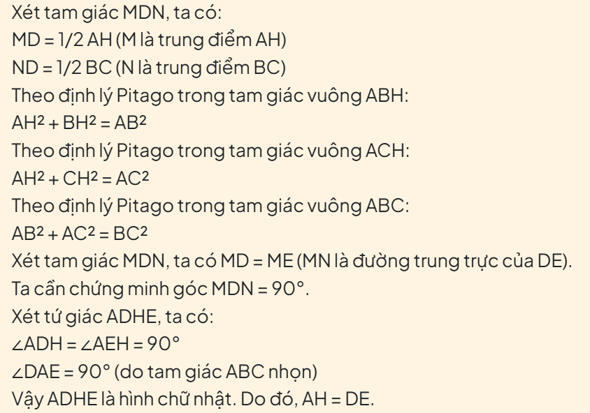 ⇒ Đoạn \(MN\) là đường trung bình trong tam giác \(AHC\) và cũng vuông góc với DE do tính chất đối xứng.