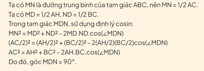 - \(M\) là trung điểm \(AH\), \(N\) là trung điểm \(BC\)