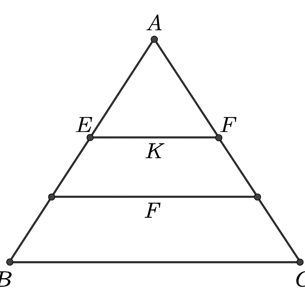 c) Tia BK cắt AC tại F, tia CK cắt AB tại E. Chứng minh \( EF \parallel BC \)