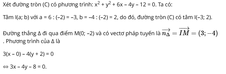 Cho đường tròn (C) có phương trình x2 + y2 + 6x – 4y – 12 = 0. Viết phương trình tiếp tuyến của (C) biết tiếp tuyến vuông góc với đường thẳng Δ = x - 4y + 2022 = 0