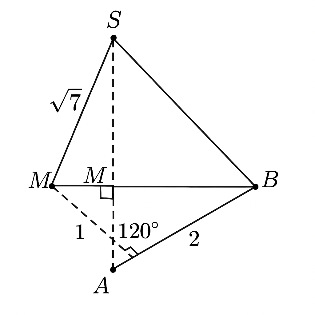 + A: (0, 0, 0), S: (0, 0, √7), B: (1, 0, 0)