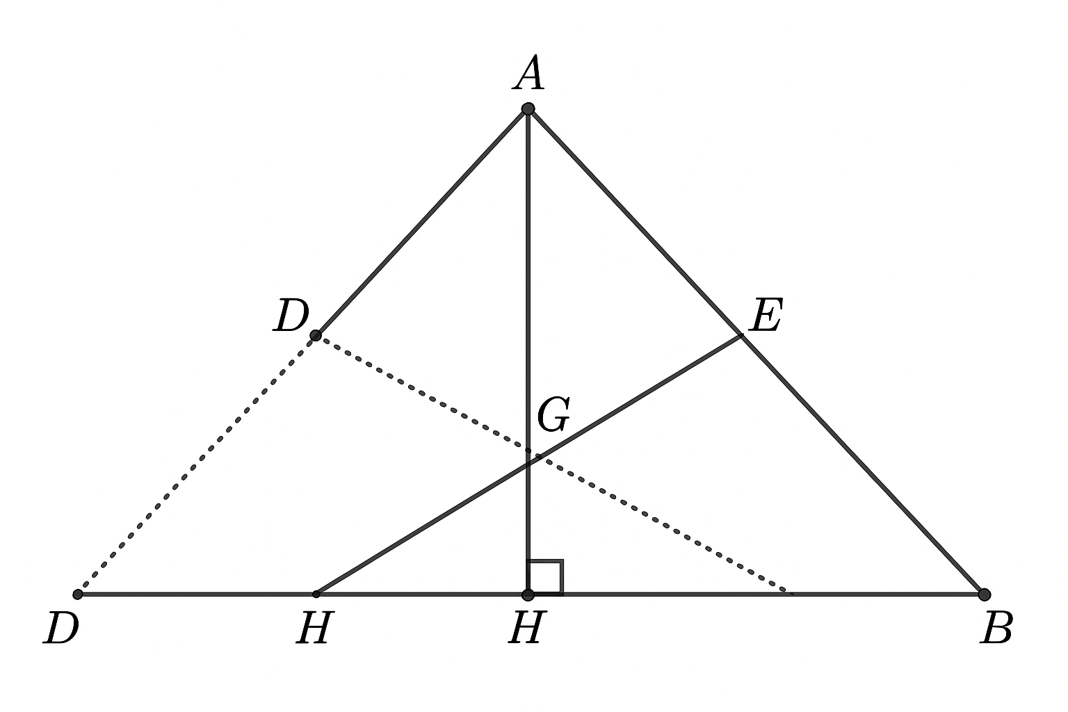 - Gọi \( CD \) cắt AH tại G → dùng hình học tọa độ hoặc chứng minh tương tự như đường trung tuyến cắt nhau tại G → G nằm trên đường nối B với E