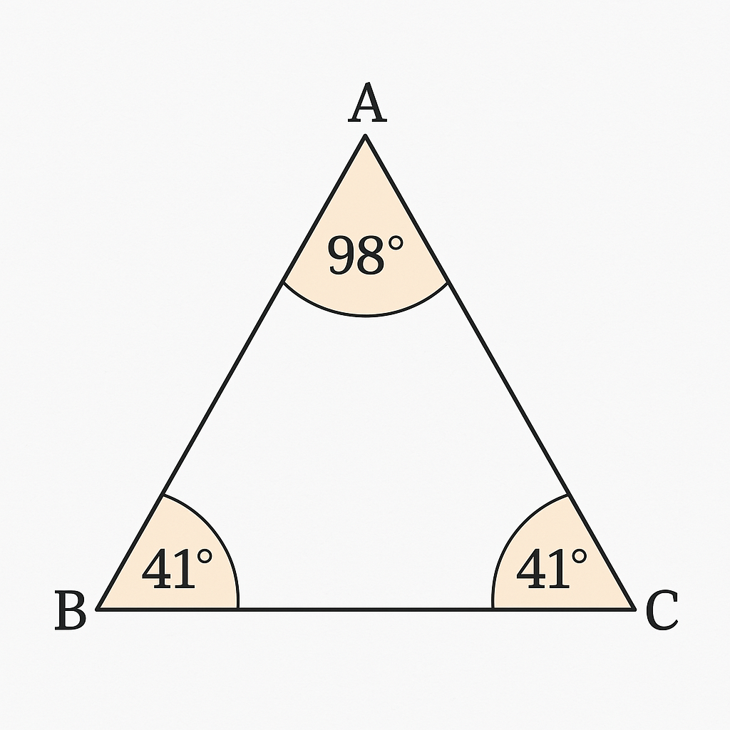 => Tam giác có góc đỉnh 98°, hai góc đáy 41°