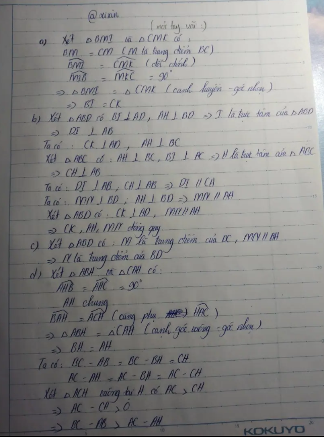 b) Kẻ AHBC, MNBD. C/m rằng các đường thẳng CK,AH,MN đồng quy