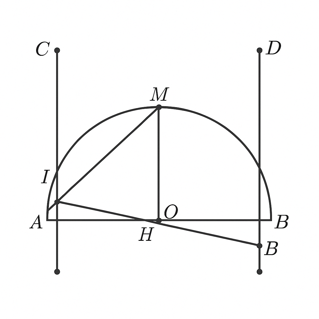 Có thể chứng minh bằng tam giác đồng dạng hoặc tính chất đối xứng, hoặc đơn giản hơn là dựng hình để thấy \( \triangle AMD \) vuông cân tại M ⇒ \( I \) là trung điểm