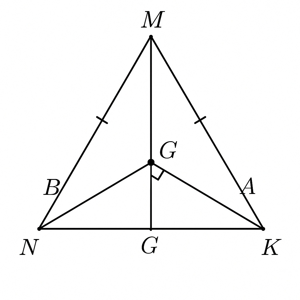 → \( MG \) chính là đường trung tuyến ứng với đáy NK trong tam giác cân