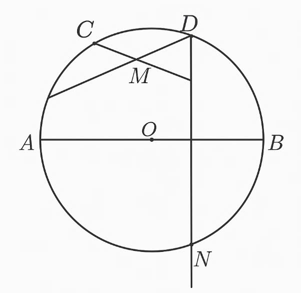 Cho đường tròn tâm O đường kính AB, trên cùng một nửa đường tròn lấy hai điểm C và D ( điểm C thuộc cung nhỏ AD), AD cắt BC tại M, kẻ MNLAB (N ∈ AB)