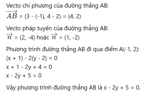 Phương trình tham số của đường thẳng đi qua hai điểm A(2;-1) và B(2;5)là