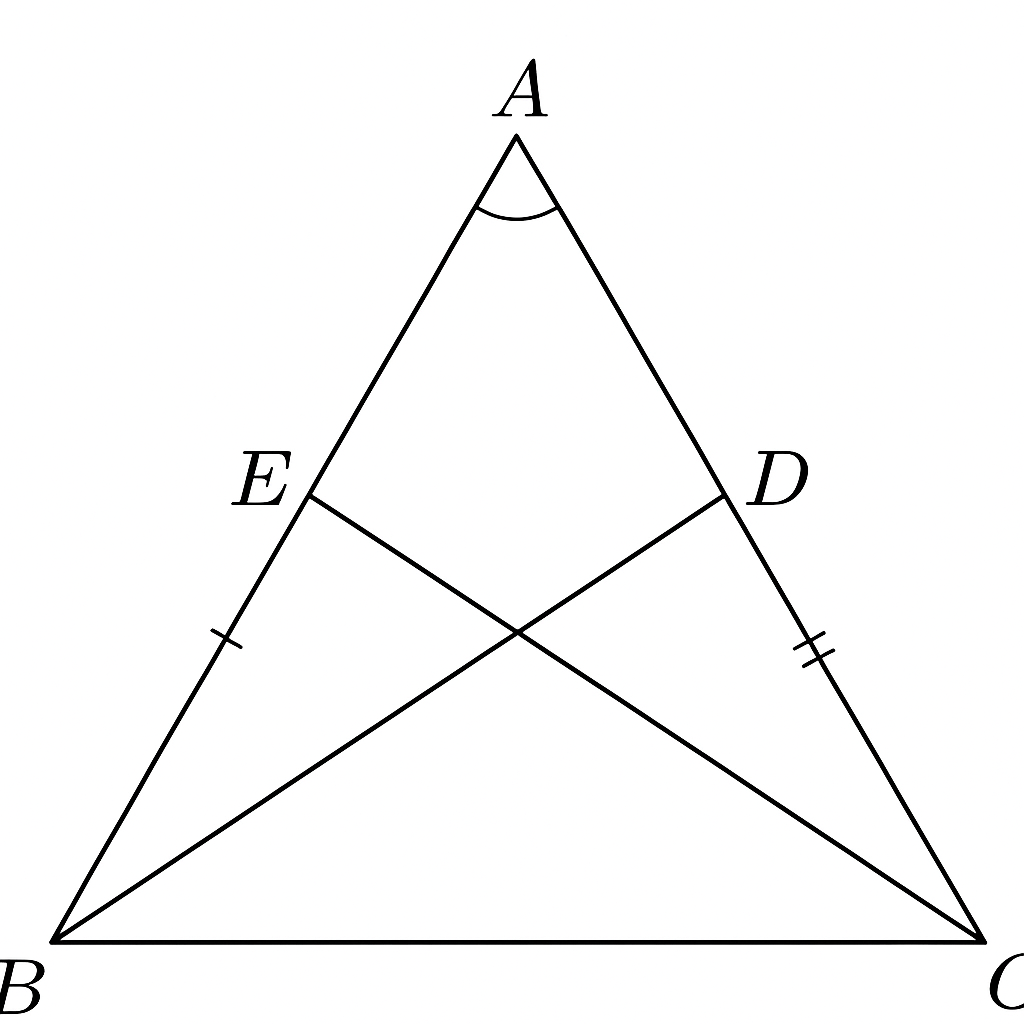 Cho tam giác ABC can tại A, lấy E thuộc AB và D thuộc AC sao cho EC = BD. Chứng mình Ae = AD