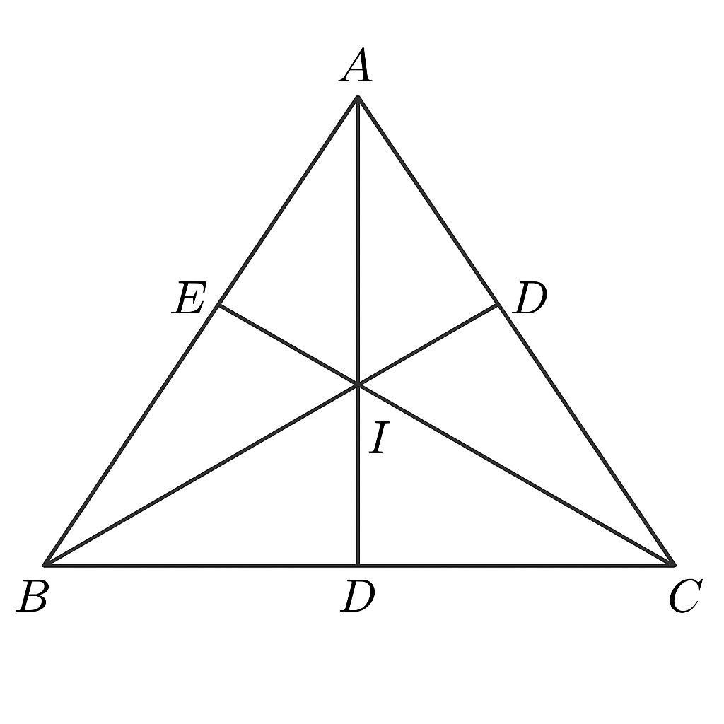 - I là trung điểm của EF (vì DI là đường trung tuyến) ⇒ IE = IF