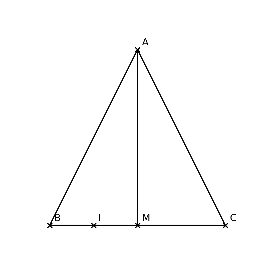 - Suy ra, đoạn \(MI\) chia đoạn \(BM\) thành 2 đoạn tỷ lệ, và tam giác \(BMI\) vuông tại \(I\).