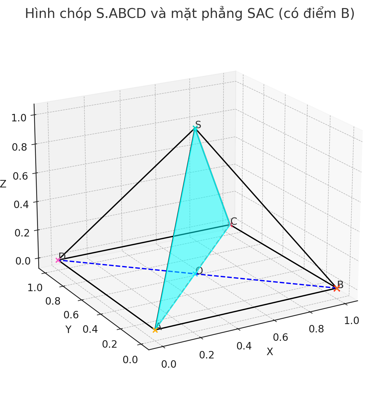 Mặt phẳng (SAC) đi qua 3 điểm \(S, A, C\).