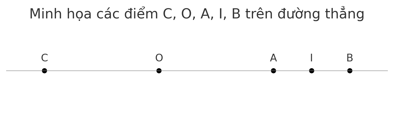 Vị trí các điểm: \( A \) – \( O \) – \( I \) – \( B \).