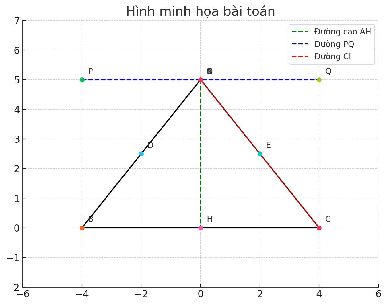Xét tam giác vuông AHDAHDAHD và AHEAHEAHE, ta nhận thấy rằng các cặp đoạn thẳng PDPDPD và DHDHDH, EQEQEQ và HQHQHQ có độ dài bằng nhau, và các điểm D,E,P,QD, E, P, QD,E,P,Q đều đối xứng qua trung điểm HHH.