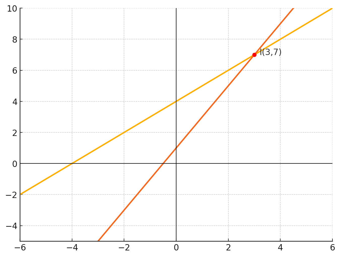 Vậy tọa độ giao điểm \( I \) là \( (3, 7) \)