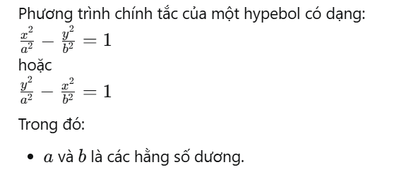 Phương trình nào sao đây là phương trình chính tắc của một hypebol