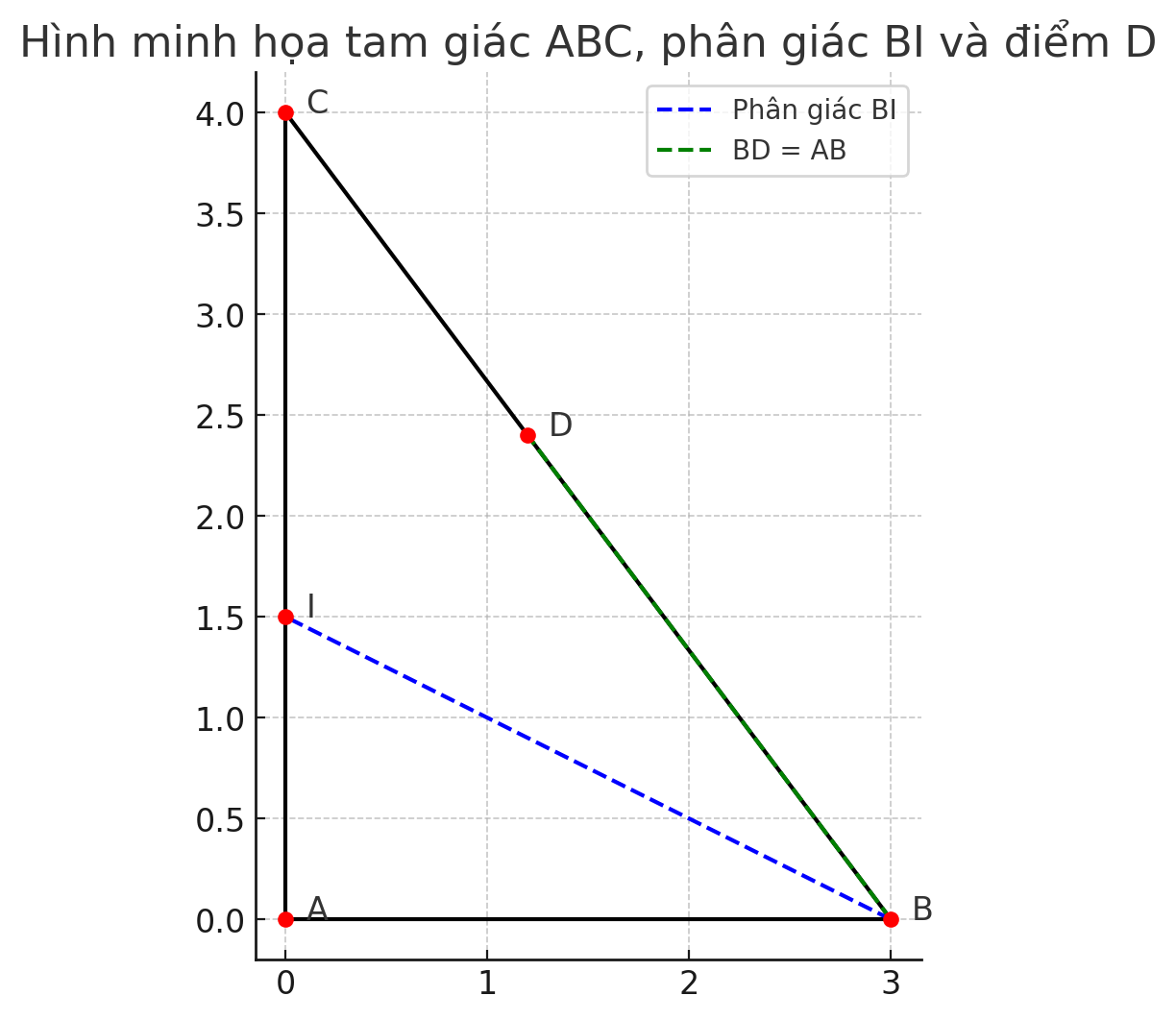 Xác định điểm I – giao điểm của phân giác BI với AC